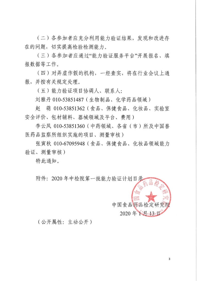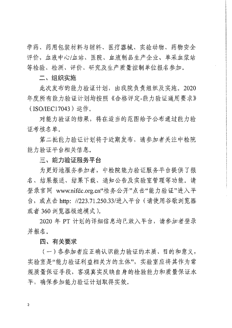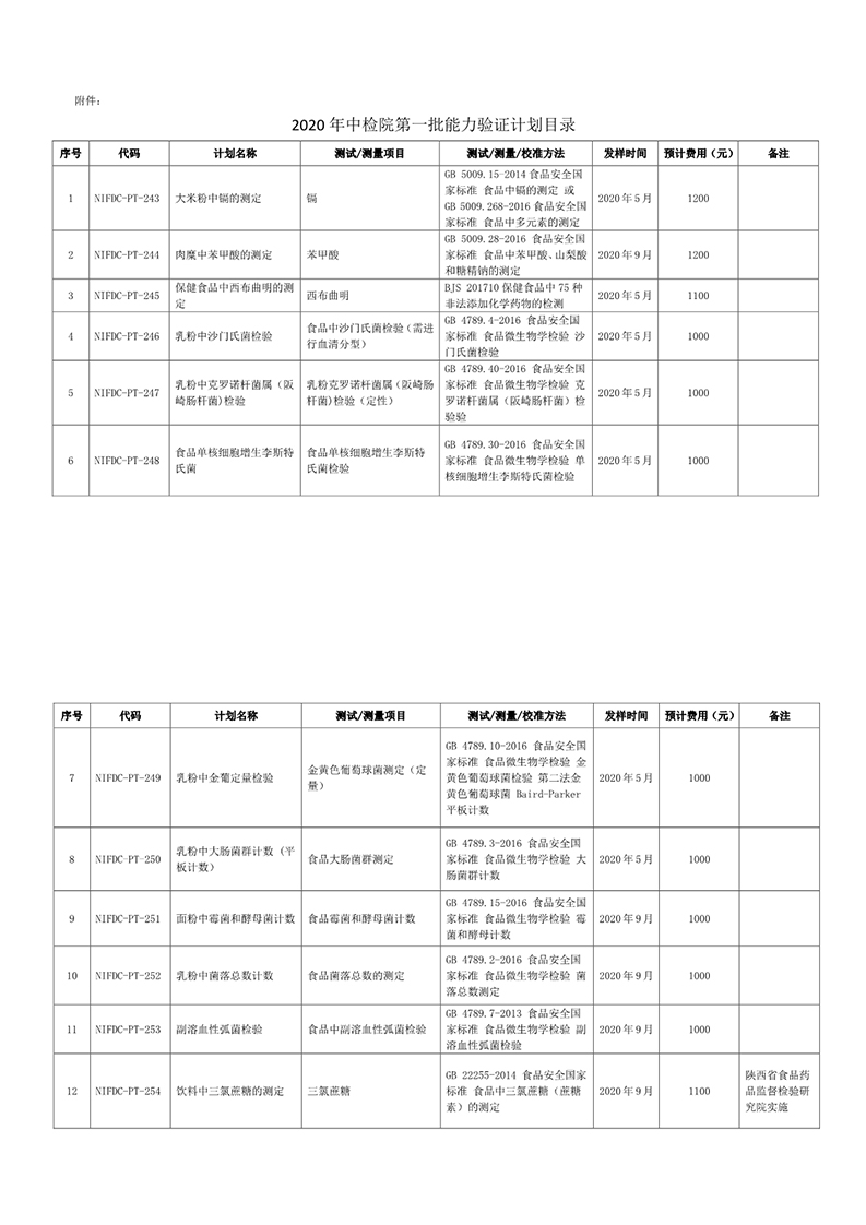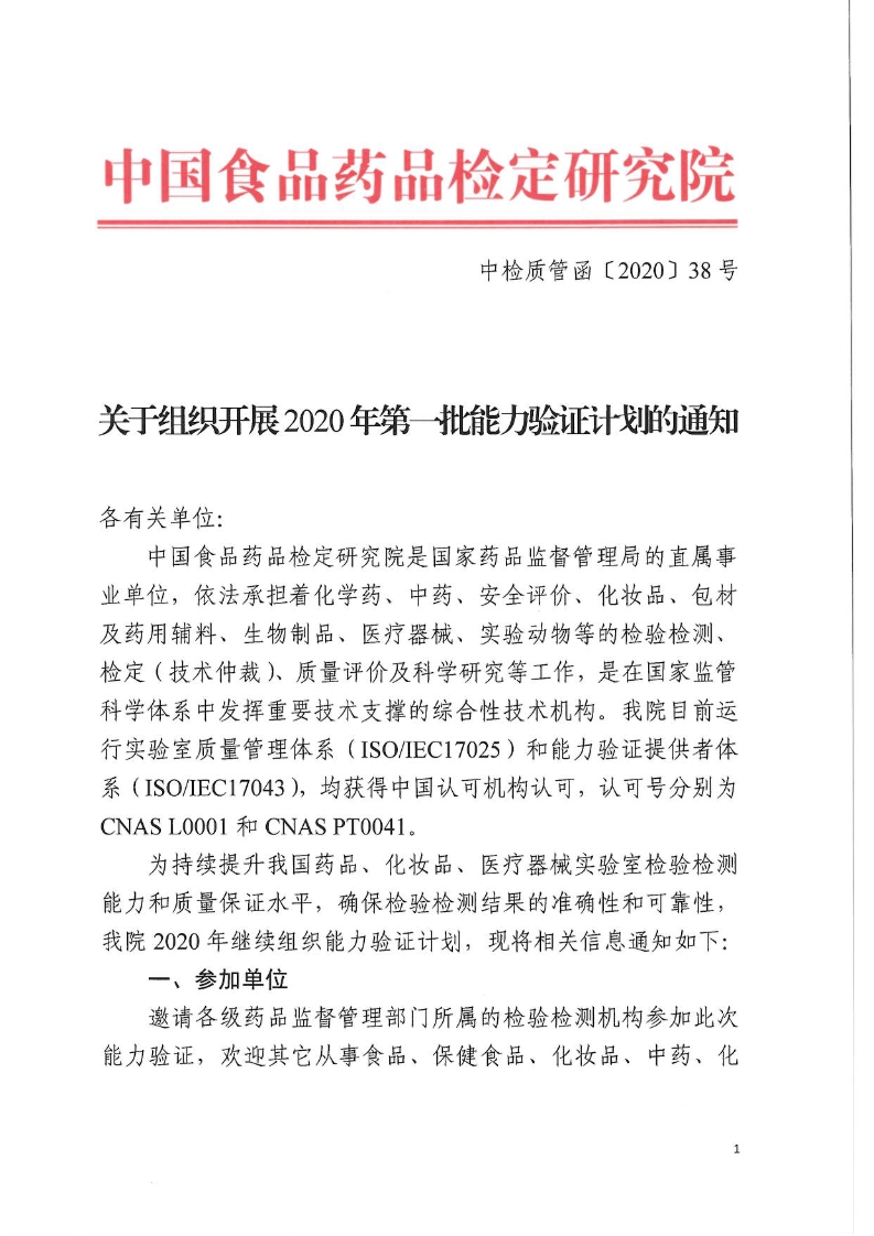 關(guān)于組織開(kāi)展2020年第一批能力驗(yàn)證計(jì)劃的通知