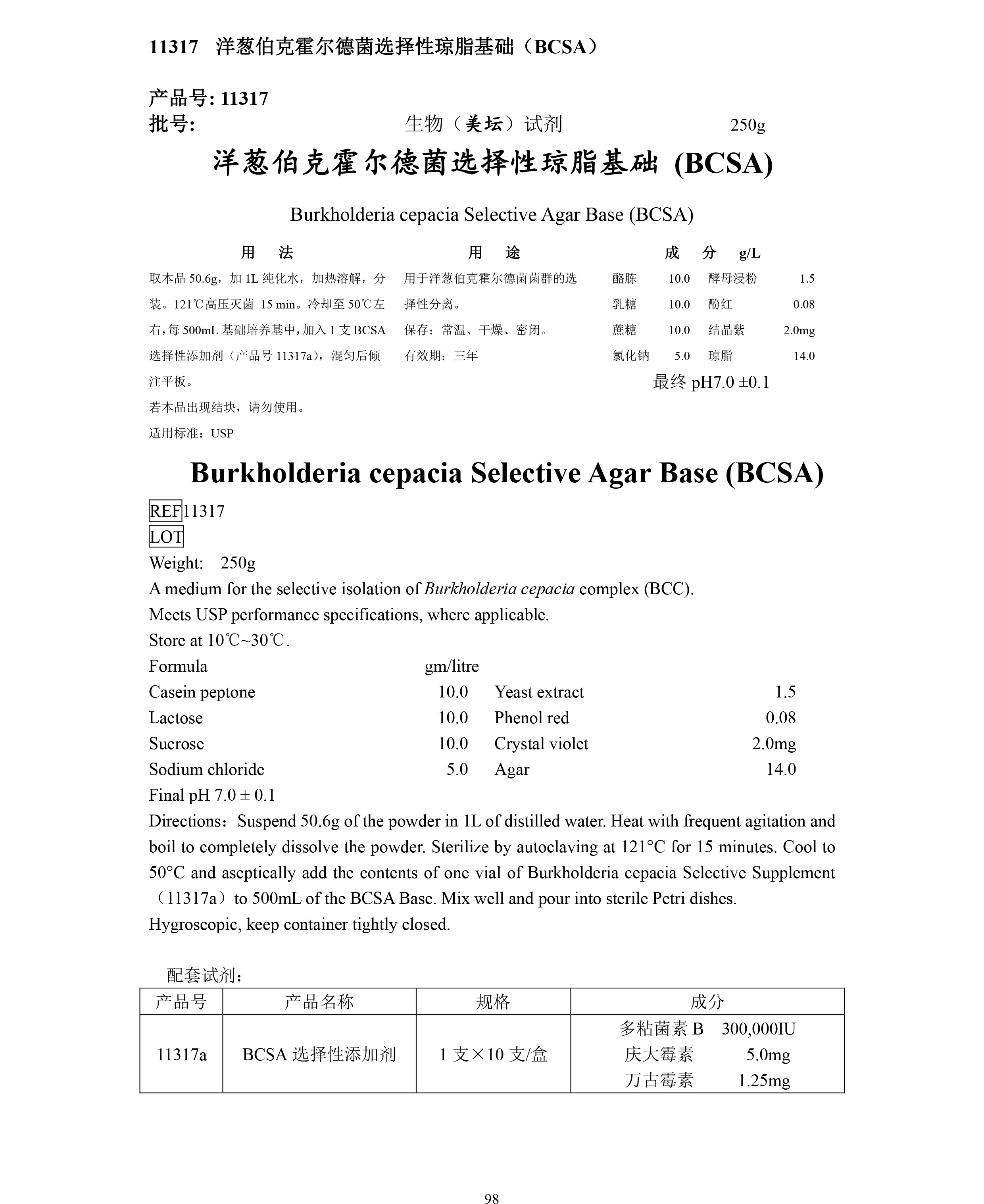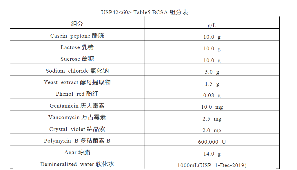 四. 關(guān)于BCSA培養(yǎng)基(USP)